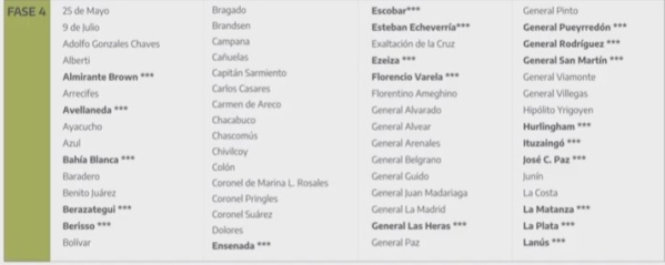 El gobierno bonaerense actualizó la situación epidemiológica de la Provincia luego del paso de la etapa de aislamiento a la de distanciamiento en el Área Metropolitana de Buenos Aires (AMBA). En Fase 3 sólo quedaron Balcarce, Castelli, Roque Pérez, San Cayetano, San Nicolás y Tandil. Por su parte, La Plata, Berisso y Ensenada pasaron a Fase 4.