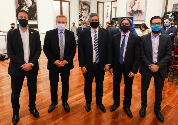 El gobernador Axel Kicillof encabezó hoy en Casa Rosada junto al presidente de la Nación, Alberto Fernández, la firma de contratos de préstamo y de garantía para el financiamiento de obras hídricas y de transporte eléctrico en la Provincia de Buenos Aires, que contarán con un desembolso parcial de la Corporación Andina de Fomento (CAF).