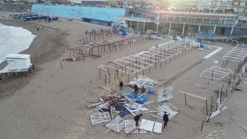 La peor parte de los incidentes se registró en el balneario “Perla Norte”, donde en pocos minutos provocaron graves destrozos. Rompieron un cerco, quitaron las lonas de las hileras de carpas y estuvieron a punto de quemar los postes de madera de las mismas.