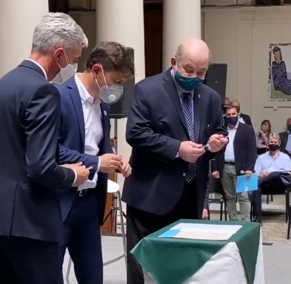 Durante la jornada de hoy, el gobernador de la Provincia de Buenos Aires, Axel Kicillof, junto al ministro de Transporte, Mario Meoni y el rector de la Universidad Nacional de La Plata, Fernando Tauber, llevaron a cabo la firma de un convenio para ceder el uso de talleres ferroviarios y reconvertirlos en un polo tecnológico.
