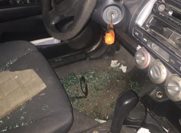 Según se informó, el auto era un Honda Fit que estaba estacionado con el motor en marcha, tenía roto el cristal con un trozo de baldosa que estaba en el asiento y el tambor de arranque forzado con un destornillador.