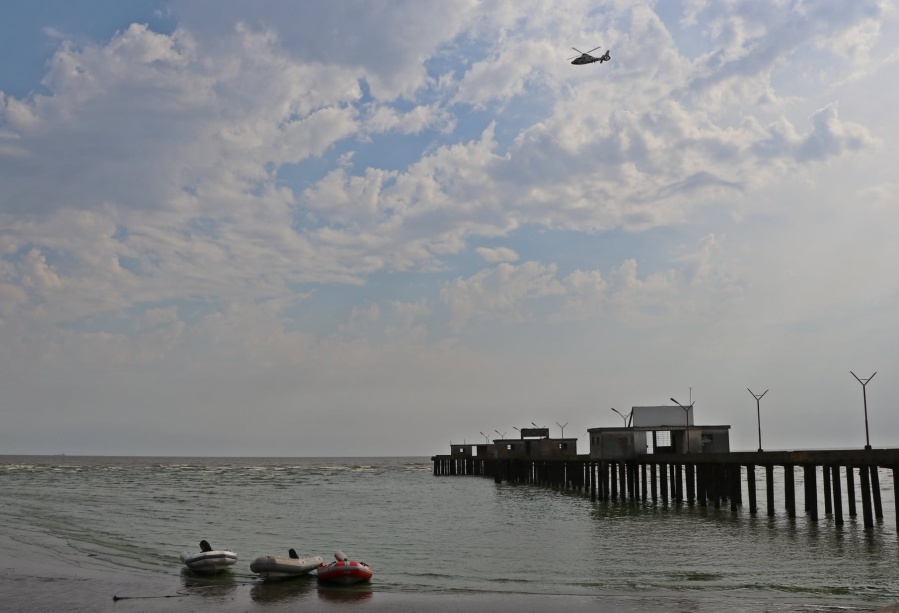 Todas las imágenes del megaoperativo en Ensenada por el pescador desaparecido: Bomberos, Prefectura Naval y un helicóptero