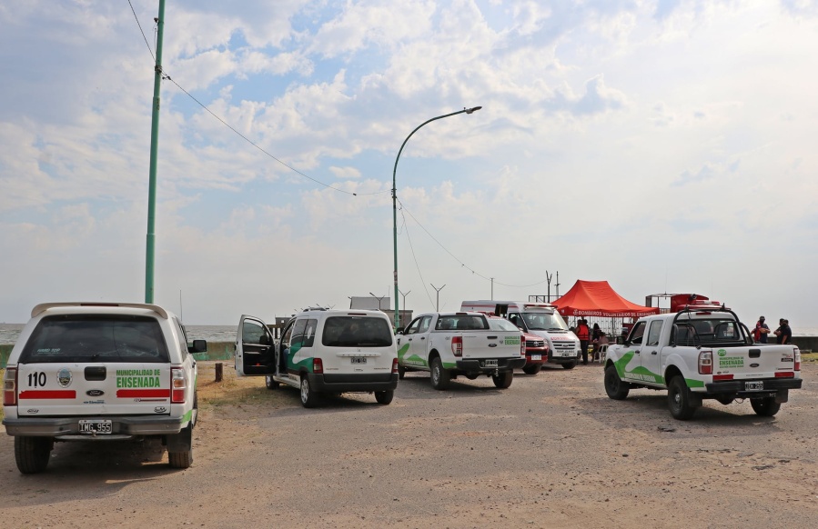 La Municipalidad de Ensenada junto a Bomberos y Prefectura Naval desarrollan un Operativo conjunto: helicópteros, embarcaciones de gran porte, semirrígidos y caminantes buscan al hombre a lo largo y ancho de la ribera.
