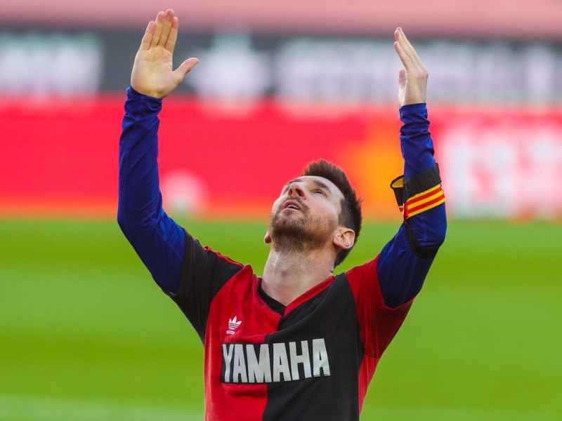 Lionel Messi festejó su gol, el cuarto del equipo catalán, con una celebración dedicada a Maradona: se sacó la 10 del Barça y mostró que debajo tenía la casaca de Newell’s con la número 10, la misma que usó Diego en su paso por el club rosarino.