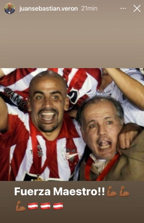 Por su parte, el presidente de Estudiantes Juan Sebastián Verón publicó una historia en su cuenta de Instagram brindandole fuerzas a su exentrenador.