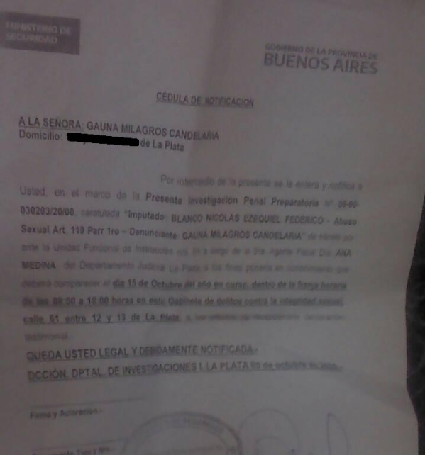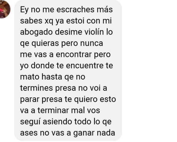 “Nadie hace nada. Ya realicé tres denuncias”, indicó a LAPLATA1.com. No es la primera vez que denuncia a este sujeto: según contó, la había apuñalado en una pierna e incluso le había pegado con el hijo en brazos. Tras la denuncia por abuso, lo volvió a denunciar por las amenazas al celular.