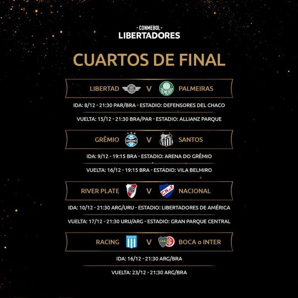 El orden de los cruces dependerá de su adversario: será local en la ida en caso de jugar ante Boca o visitante si clasifica el conjunto brasileño.
