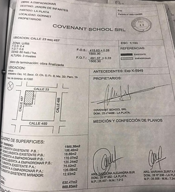 El Colegio Covenant de Gonnet sigue con las obras a pesar de las sucesivas clausuras. Se trata de un tinglado y la obra carece de factibilidad. Los planos nunca fueron autorizados. Sin embargo, desde el colegio continúan violando las restricciones. Este fin de semana volvieron a clausurar un nuevo avance de obra.