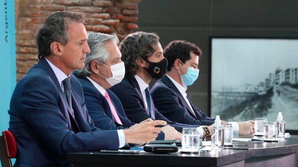 Previamente, el Presidente se comunicó -mediante videoconferencia- con los gobernadores de Córdoba, Juan Schiaretti; de Misiones, Oscar Herrera Ahuad, y de Río Negro, Arabela Carreras, además de intendentes de distintas localidades.