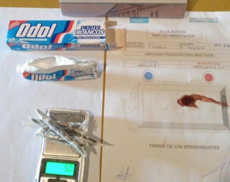 Tras una requisa de los mismos, se determinó que dentro de la pasta dental había cuatro envoltorios de marihuana.