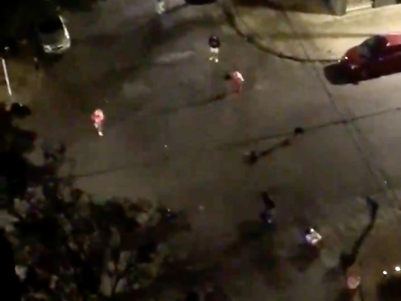 Una vecina platense posteó un video en Twitter de cómo un grupo de jóvenes revoleaban sillas y piedras en pleno centro platense. En un momento pasó la policía y no hizo nada.