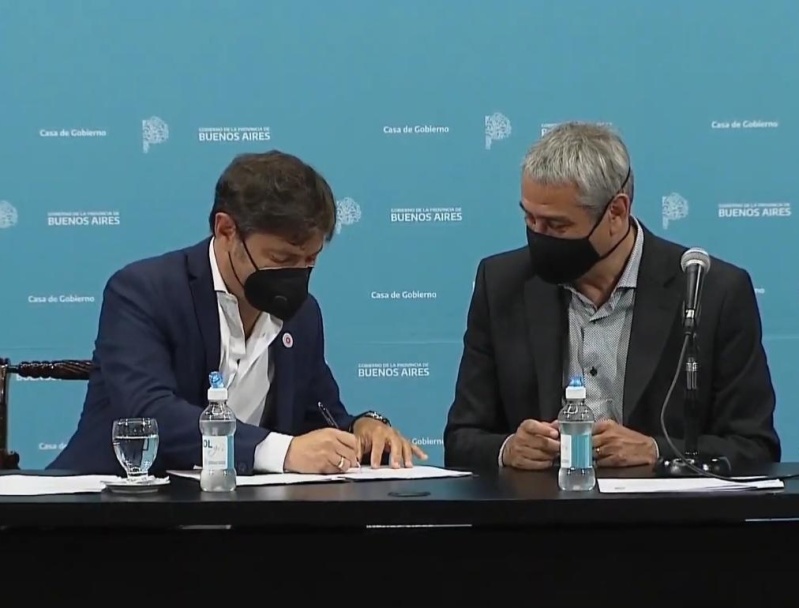 El gobernador de la provincia de Buenos Aires, Axel Kicillof, encabezó este martes, junto al ministro de Desarrollo Territorial y Hábitat de la Nación, Jorge Ferraresi, la firma de convenios en el marco del lanzamiento del programa Casa Propia.