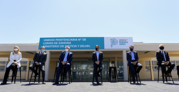 El gobernador Axel Kicillof visitó esta mañana el municipio de Lomas de Zamora, donde junto al presidente de la Nación, Alberto Fernández, y al ministro de Justicia y Derechos Humanos, Julio Alak, presentó la culminación del Plan de Infraestructura Penitenciaria Provincial 2020, que con una inversión de 800 millones de pesos permitió sumar 1.222 plazas e inaugurar cinco nuevos hospitales en cárceles bonaerenses.