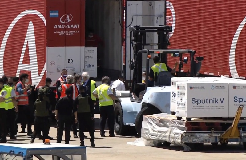Las primeras 300 mil dosis de la vacuna Sputnik V llegaron hoy al país en un vuelo de Aerolíneas Argentinas proveniente de Moscú, Rusia, y se prevé que comenzarán a ser distribuidas en todo el país en un lapso de 24 horas. Pasadas las 11, comenzó la descarga de los termocontenedores, que mantienen el frío que requiere el producto.