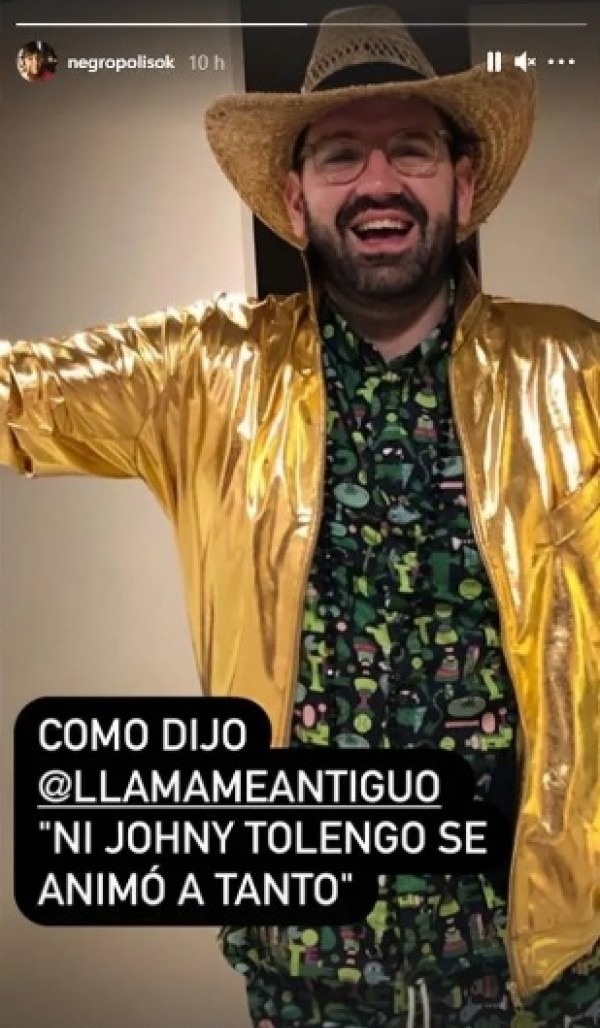 "Como dijo @llamameantiguo (Humberto Tortonese): 'Ni Johny Tolengo se animó a tanto'", escribió la locutora en sus historias de Instagram, comparando a Betular con los llamativos atuendos que usaba el personaje interpretado por Juan Carlos Calabró.