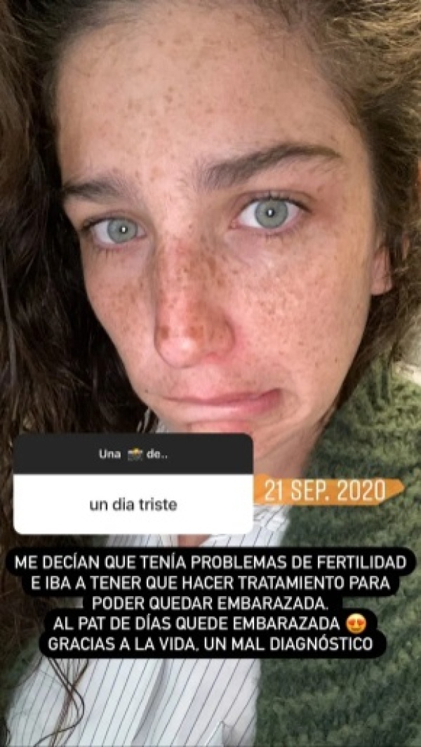 "Me decían que tenía problemas de fertilidad e iba a tener que hacer tratamiento para poder quedar embarazada. Un par de días después quedé embarazada. Gracias a la vida, un mal diagnóstico", escribió la actriz en las stories de Instagram, haciendo que reciba muchísimas consultas por lo que vivió.