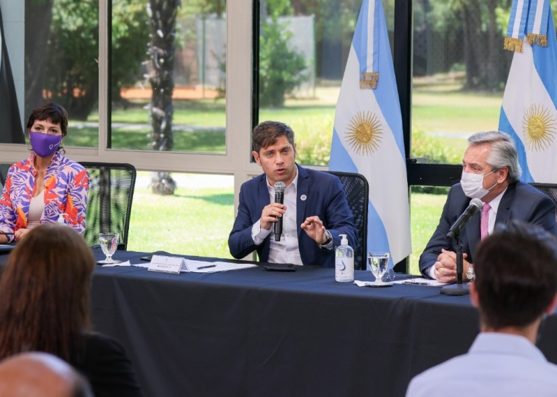 El gobernador de la provincia de Buenos Aires, Axel Kicillof, participó esta mañana junto al presidente de la Nación, Alberto Fernández, y la intendenta de Quilmes, Mayra Mendoza, de un acto en la Residencia de Olivos en el que se firmaron convenios para el desarrollo de un plan integral de urbanización del barrio Azul.