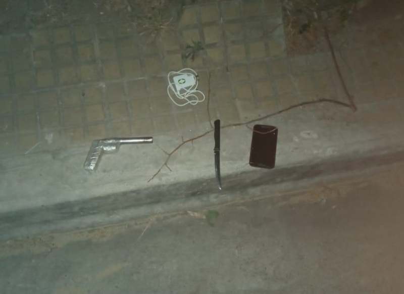 Luego, los uniformados rastrillaron la zona por donde había circulado la moto en la persecución y encontraron una réplica de un arma de fuego fabricada con madera y metal que el ahora detenido había descartado en el camino.