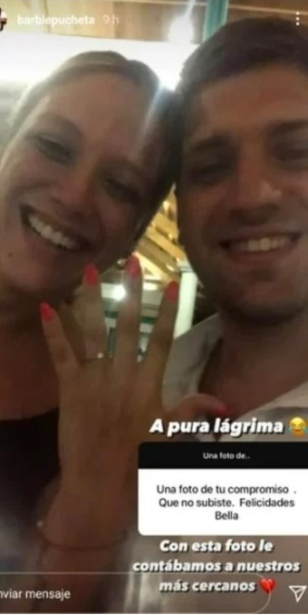 "Una foto de tu compromiso que no subiste", le pidió un usuario de Instagram a la hija de Nazarena Vélez que la joven no dudó en acceder. "Con esta foto le contábamos a nuestros más cercanos", reveló Barbie acompañando sus palabras con una fotografía luciendo la alianza de compromiso con su pareja al lado.