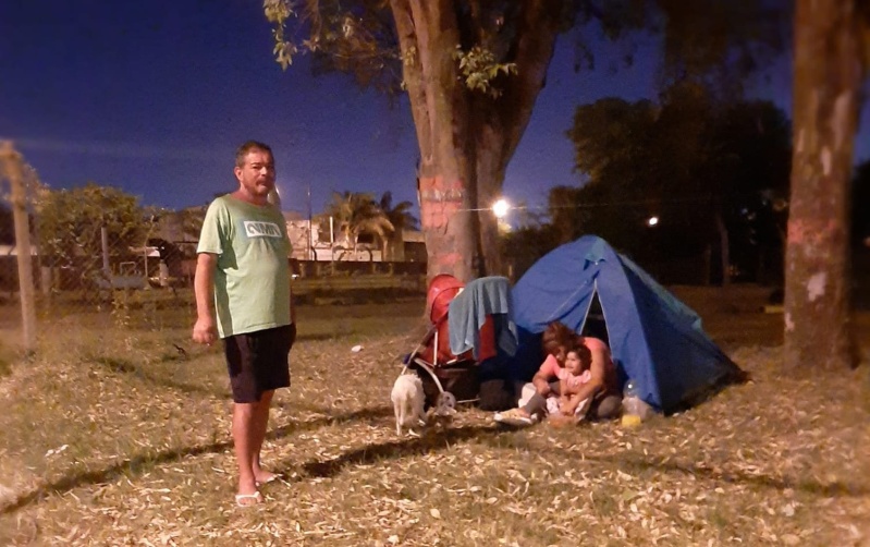 Se quedaron sin domicilio y ahora se encuentran viviendo en la calle. César, Milagros (embarazada de 4 meses) y un bebé son los integrantes del grupo familiar.