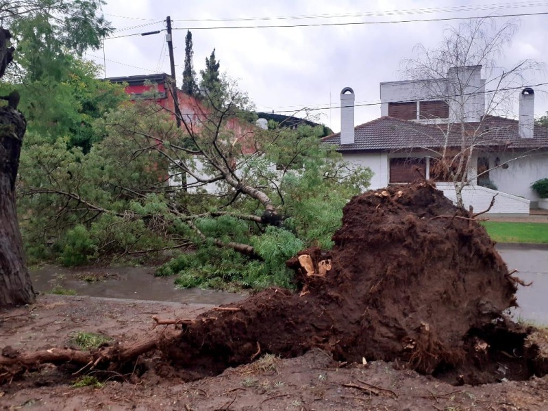 Por el temporal, se produjo voladura de techos, caída de árboles y postes de servicios públicos, lo que requirió de la intervención de los Bomberos Voluntarios, quienes asistieron a los damnificados.