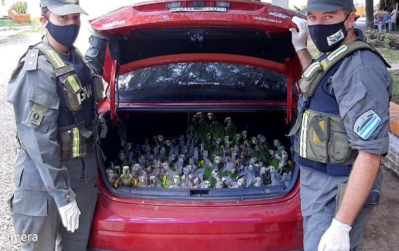 Agentes de Gendarmería rescataron a 216 loros habladores que eran trasladados en el baúl de un auto, con una sensación térmica que superaba los 40 grados.