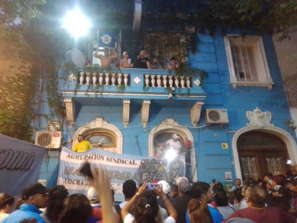Braian y Kevin, los nietos del Pata Medina convocaron a los afiliados a acercarse a la histórica sede de avenida 44. Hoy totalmente abandonada.