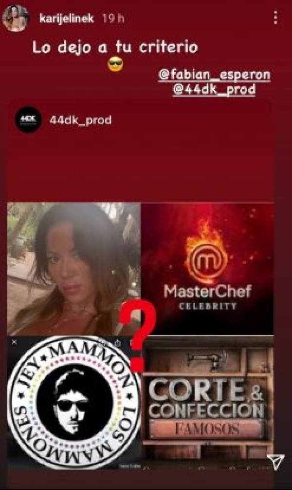 En ella, junto a su frase "Lo dejo a tu criterio" dejó en evidencia que muy pronto formará parte de alguno de los siguientes programas: