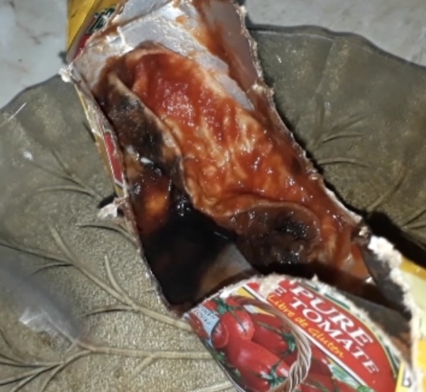 Uno de estos casos había ocurrido en diciembre pasado. “Termine de tirar el puré de tomate y seguía sintiendo la caja media pesada, decidí abrirla y me encuentro con esto”, indicó la joven de José C Paz, que anexó algunas fotos.