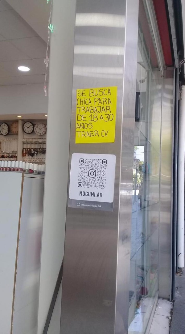 Se trata del local Mogumi, ubicado en calle 8 entre 48 y 49. En la puerta del comercio hay un cartel pegado que indica que aquellas mujeres que estén interesadas, dejen el CV.
