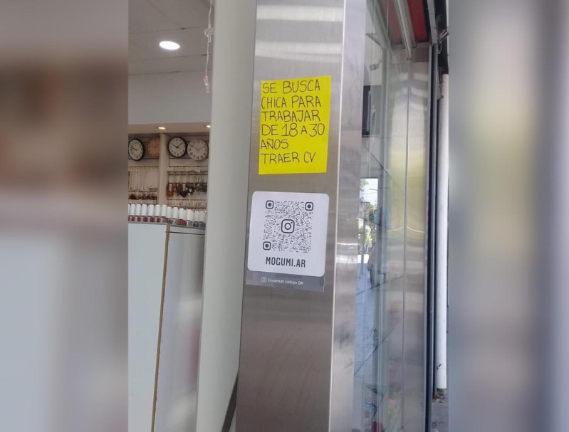 Se trata del local Mogumi, ubicado en calle 8 entre 48 y 49. En la puerta del comercio hay un cartel pegado que indica que aquellas mujeres que estén interesadas, dejen el CV.