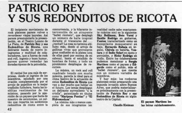Entonces comenzaron los recitales de Patricio Rey y sus redonditos de ricota. Hay aún dudas sobre la decisión de "Patricio Rey", pero se sabe que los famosos "redonditos de ricota" eran literalmente eso: buñuelos de ricota que se repartían en los recitales.