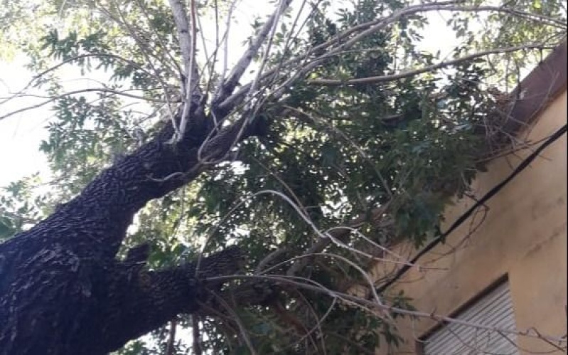 Los vecinos de 60 entre 137 y 138 se encuentran preocupados por un árbol, que luego de la última tormenta que registró vientos de aproximadamente 50 km/h, quedó tumbado sobre una casa.