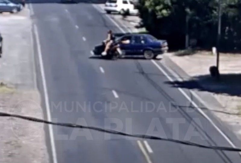 Por no mirar como es debido, un automovilista impactó a una moto y su conductora debió ser atendida por personal médico. El accidente quedó registrado en las cámaras de seguridad La Plata.