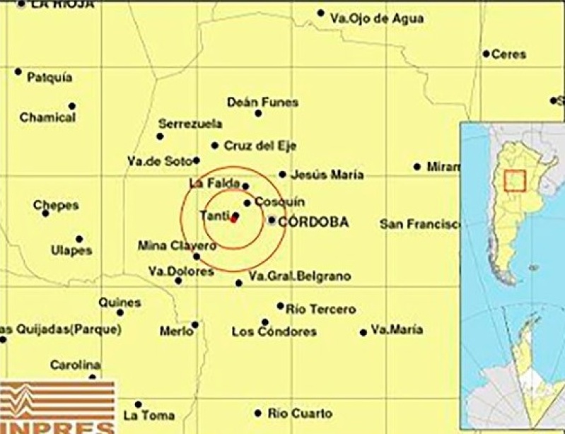 A diez días del terremoto que provocó varios heridos y daños en la provincia de San Juan, otro sismo se sintió en la provincia de Córdoba. El epicentro tuvo lugar a 48 km al oeste de la capital, y a 16 km de la localidad de Tanti.