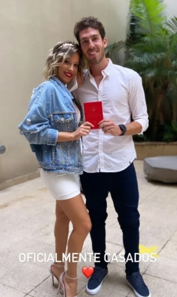 “Oficialmente casados”, escribió la actriz en Instagram, sosteniendo con su flamante marido la libreta roja que los une en matrimonio.