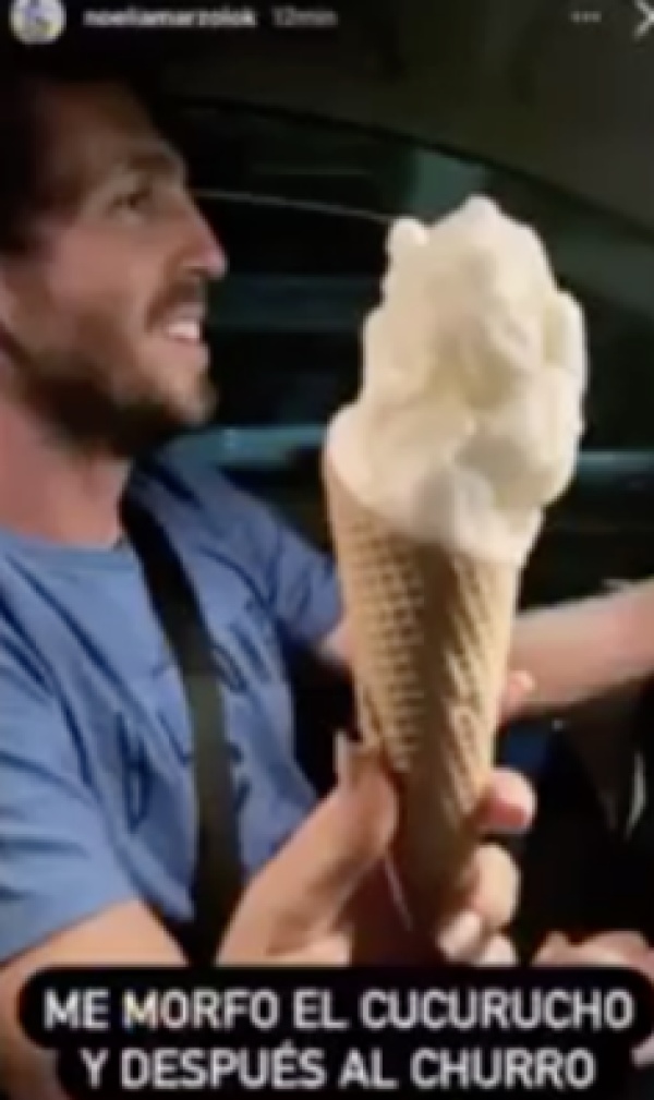 "Chicos, ahí está Rami cumpliendo mi antojo de helado cuando la heladería ya cerró y rogándole a la chica que le venda un cuarto", escribió ella. Y dijo que al final, el joven volvió al auto con un cucurucho.
