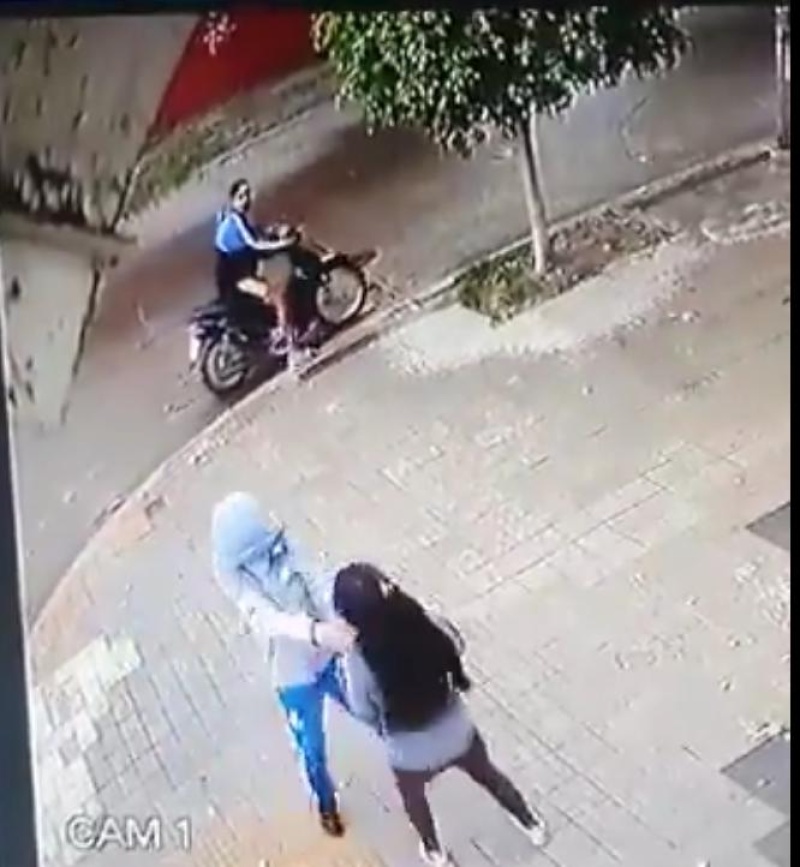 Todo quedó filmado por una cámara de seguridad, que grabó la triste secuencia. Los ladrones eran dos y se movilizaban en una moto. El que bajó para atacarla tenía capucha e intentó taparse según se ve en el video, en cambio el que conduce el rodado está con la cara al descubierto.