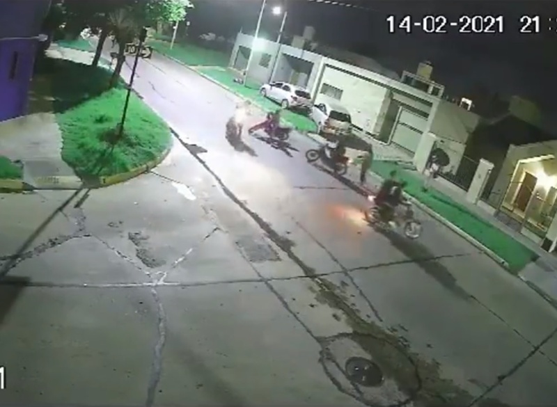 La secuencia, ocurrida el pasado domingo a las 21.30, quedó registrada en una cámara de seguridad de la cuadra que captó el momento exacto en que los ladrones sorprendieron al muchacho y, en una rápida maniobra, lo obligaron a detenerse.