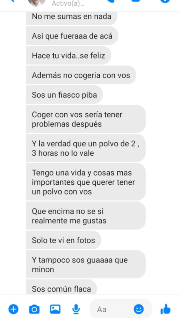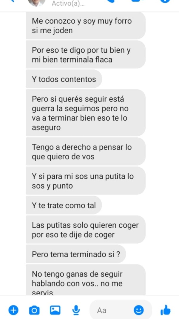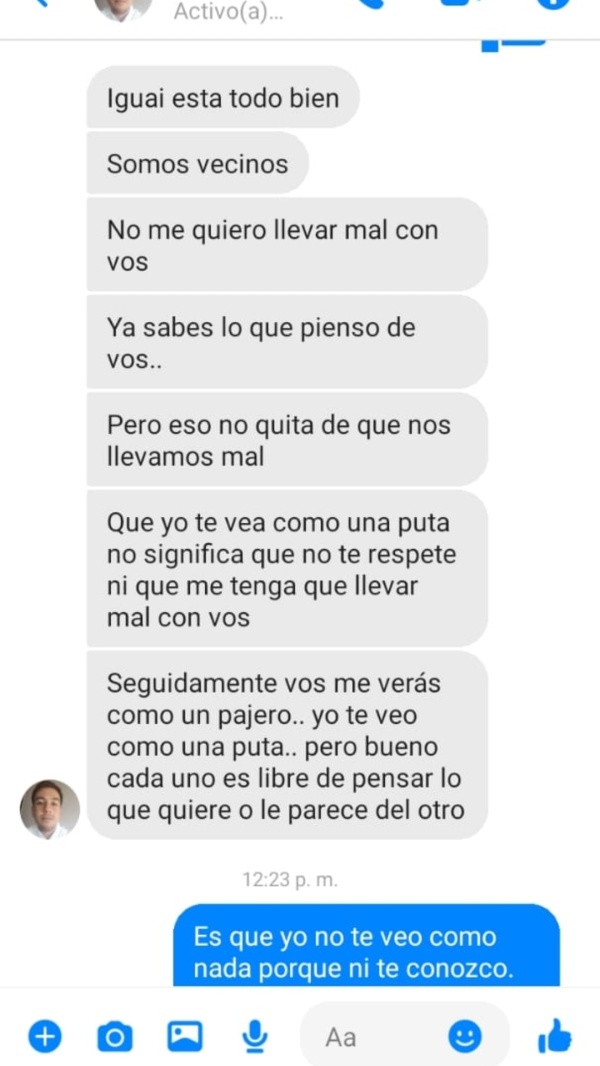 “Vívis en mi barrio, mejor que nunca te vea porque te hago pasar un papelón en plena calle; no paro hasta dejarte en bancarrota y que termines en el penal de mujeres”, fueron algunos de los mensajes que se detallan en las imágenes.