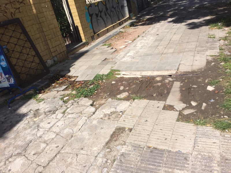 A las baldosas flojas de La Plata, también se le suman la falta de las mismas, lo que dificulta la circulación de los transeúntes, que muchas veces se ven obligadas a bajar y caminar unos metros por la calle por el mal estado de las veredas.