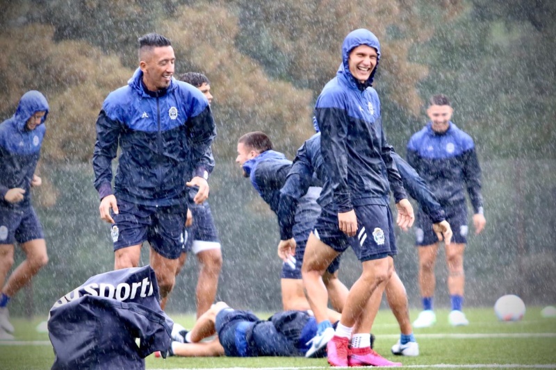 En el inicio de los trabajos, tras el fin de semana de descanso, el cuerpo técnico ordenó tareas físicas y movimientos con pelota para finalizar con un ensayo futbolístico en espacios reducidos. Todo se desarrollo, producto de las condiciones climáticas, en la cancha de césped sintético que se encuentra a metros del Campus.