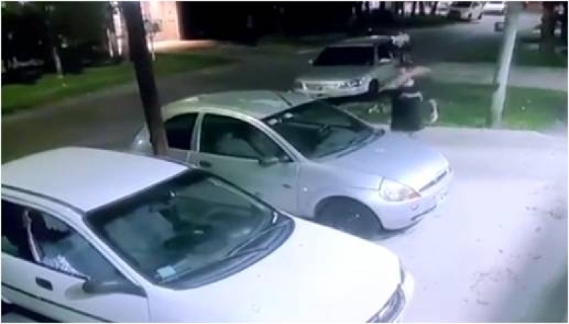 El hombre estaba fuera de sí, tal como lo muestran los videos de las cámaras de seguridad del barrio, y sin mediar palabra comenzó a romper los vidrios de los autos estacionados en la vereda continua a su casa.