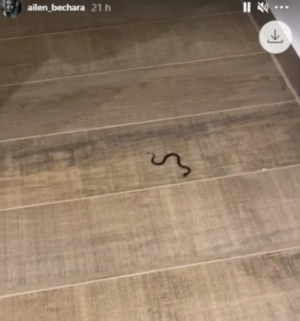 En primer lugar, la modelo compartió una story del animal moviéndose rápidamente de acá para allá. "Sorpresa en la pieza", comentó Ailén en instagram junto al clip que muestra cómo la serpiente hace de las suyas.