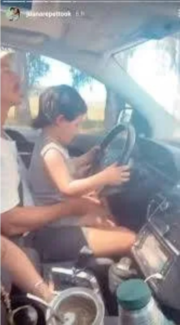 En uno de sus últimos posteos, la hija de Reina Reech publicó una foto del niño dando sus primeros "pasos" al volante. En la falda de su pareja, Toribio agarró el volante y manejó el vehículo sin cinturón con la ayuda de Graviotto.