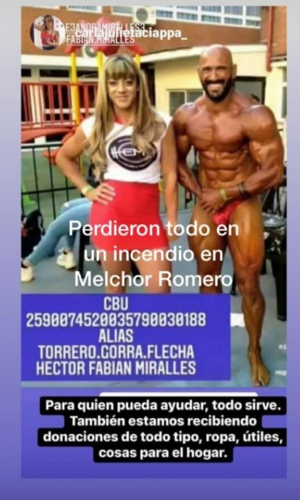 Una pareja de físicoculturistas de La Plata perdió todo luego de que su casa se incendiara en la localidad de Melchor Romero.