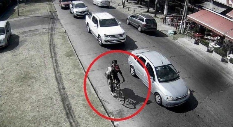La secuencia muestra a Maia junto Carlos Savanz a bordo de una bicicleta sobre la autopista. Según se detalló, se desplazaban en el sentido que va hacia la localidad bonaerense de Moreno.