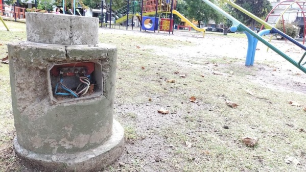 Sucede que quienes acuden a esa plaza con sus hijos, manifestaron su preocupación ya que los chicos que asisten a jugar, podrían sufrir un accidente si tocan esos cables.