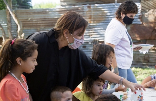 Allí pasó la tarde del martes acompañando las actividades recreativas. Además hizo una donación de guardapolvos para los nenes y nenas de ambos merenderos.