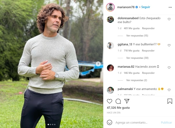 En esta ocasión, la publicación de Mariano Martínez no parecía tener un costado sensual, pero sus fans comenzaron a hablar del bulto que tenía en su pantalón. Entre risas, sus fans se lo hicieron saber en los comentarios, con pícaras frases.